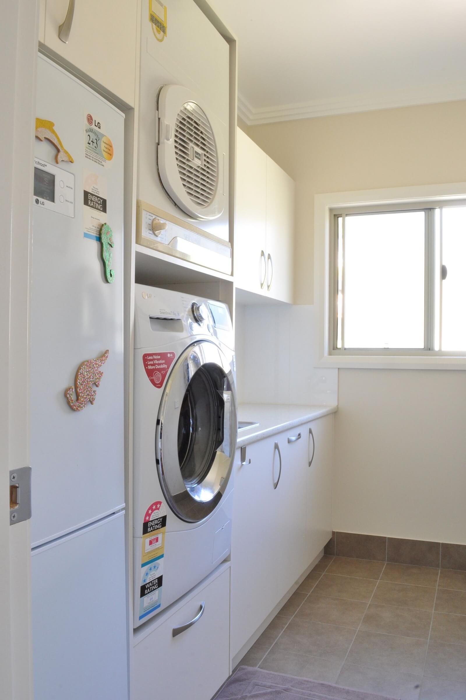 The laundry may not be your favorite space to spend time, but doing the laundry is a necessary chore. A well-designed space can not only make time in the laundry more appealing but it can really improve the functionality of the room which allows you to minimise the time and effort of laundry duties. Clever ideas and use of space can allow for easily accessible washing and drying. Built in laundry hampers can assist with organising and separating the soiled clothing and linen. Discreet iron storage can make ironing easier and more accessible. Benchtops, cabinets and hanging rails can all aid with sorting, hanging, folding and storage of linen and cleaning items.